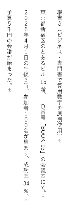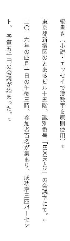 縦書きを算用数字を使用して整えた例