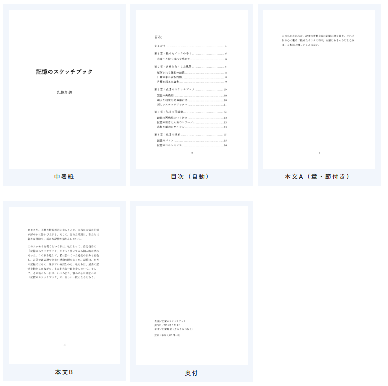 本文をコピー&ペーストするだけで、誰でも簡単に、プロがきれいな本が制作できます。
