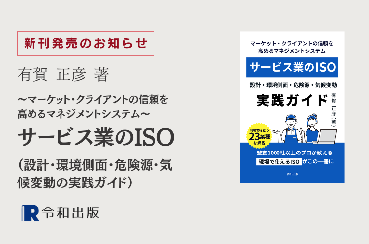 お客様の声 『~マーケット・クライアントの信頼を高めるマネジメントシステム~ サービス業のISO (設計・環境側面・危険源・気候変動の実践ガイド)』の出版 有賀 正彦さま